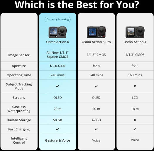 DJI Osmo Action 6 Enhanced Combo sets a new benchmark for action cameras, featuring a massive 1/1.1-inch square sensor and adaptive f/2.0-f/4.0 lens that automatically adjusts for optimal exposure in extreme conditions—from blinding sun to pitch-black nights.