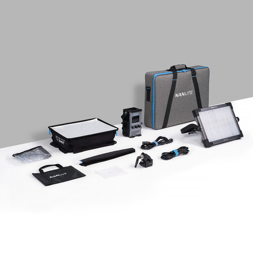 Nanlite thought of every aspect to make the Alien 300C RGB LED Light Panel a multifaceted LED panel that checks every box for complete lighting control and high brightness. Designed to be efficiently assembled with a quick release softbox, the Alien 300C is a compact 20.2 x 17.8″ RGBWW fixture that is twice as bright as the 150C version. It offers a bright throw and an extended CCT range of up to 12,000K while running on AC power, using up to two optional V-mount batteries or external 48V power sources. Its versatility doesn’t stop there, as the panel’s control options cover the most varied methods, including onboard or app control, 2.4 GHz wireless, DMX/RDM, and CRMX LumenRadio. In addition to the softbox that allows setup and breakdown with speed and ease, Nanlite includes a grid and two diffusers for better control. The Alien 300C’s body is IP55 rated for protection against dust and water, while its conveniently separate control unit can be protected with a rain cover carefully included in the box. A padded carry case allows you to store and travel with the LED panel and all its included accessories.