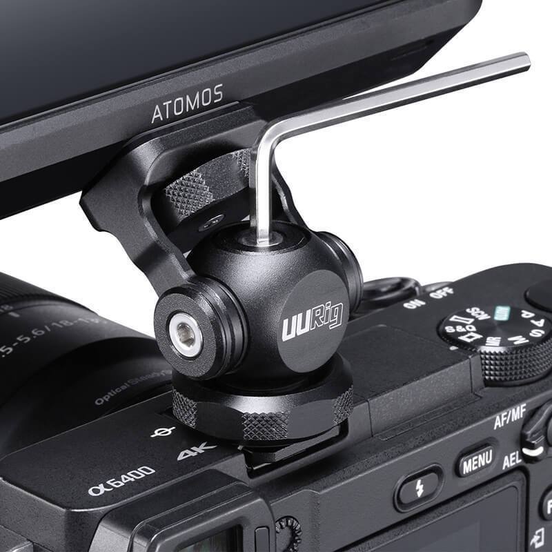 This monitor bracket fixed directly to the camera shoe fits Arri positioning hole, 1/4 interface, universal 180 ° front, and rear adjustment, 360 ° rotation around, made from aluminum alloy. And the most special is our Arri positioning hole use the spring design when your monitor has Arri positioning hole it can behold much tight if it doesn’t have Arri positioning hole, it will be pushed down. And this one fits any 1/4 interface product like tripods or something, and this one can make sure your monitor would never fall out. And you can connect anything you can, this is the one you should never miss out.